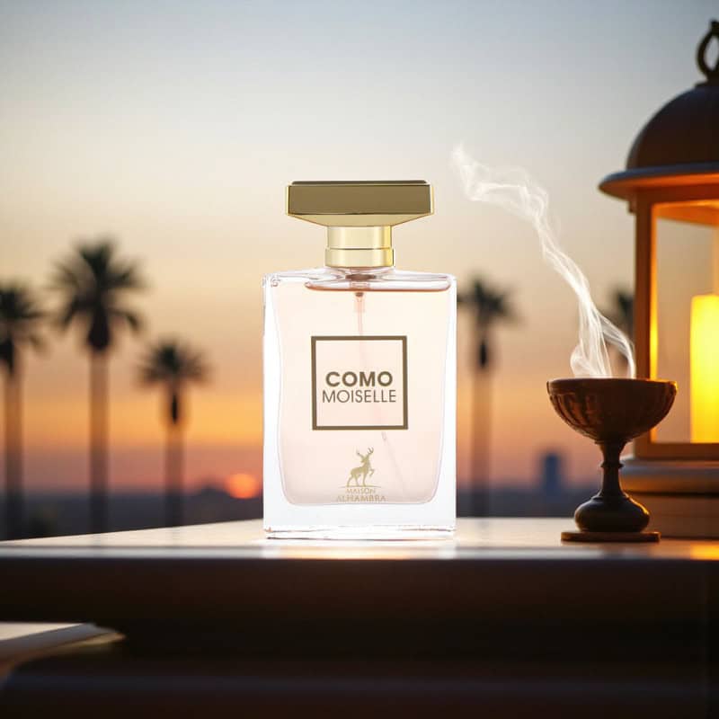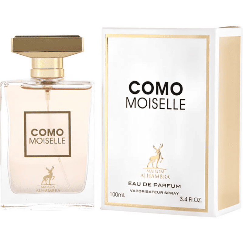 Maison Alhambra Como Moiselle verbindet zeitlose Eleganz: Orange, Mandarine, Bergamotte und Orangenblüte eröffnen strahlend. Das Herz blüht mit türkischer Rose, Jasmin, Mimose und Ylang-Ylang.